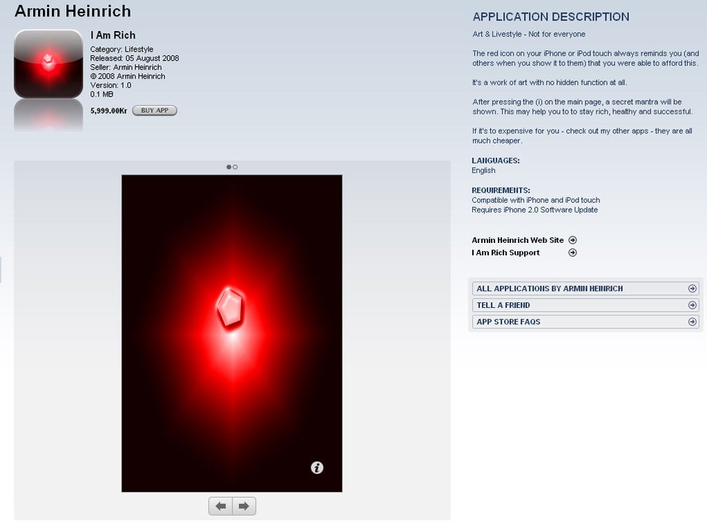There's an app revolution underway. Eager to equip our smartphones and tablets with the latest software, we download apps without really thinking – and in huge numbers; around 29 billion apps are due to be downloaded in 2011. As a result, slightly misleading descriptions or titles cause us to make ill-considered purchases – the most famous of which was probably "I Am Rich". Once available for the iPhone, it did nothing whatsoever (and, to be fair, didn't claim to do anything) but it cost $1,000 (£620). Many found themselves buying it out of curiosity and immediately regretted it. Apple are usually fairly quick to remove misleading apps – one, called "Unlock It!", disappeared in the time it took to write this article – but the Android store isn't policed as scrupulously.