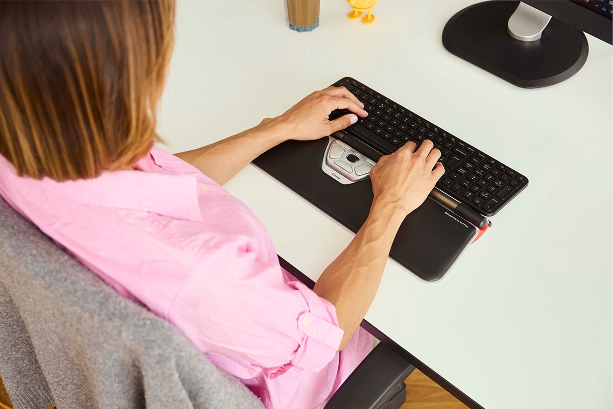 RollerMouse Red sits in front of you, directly below the keyboard, keeping your hands central for a smooth, two-handed workflow that eases pressure on your neck, shoulders, elbows and wrists.