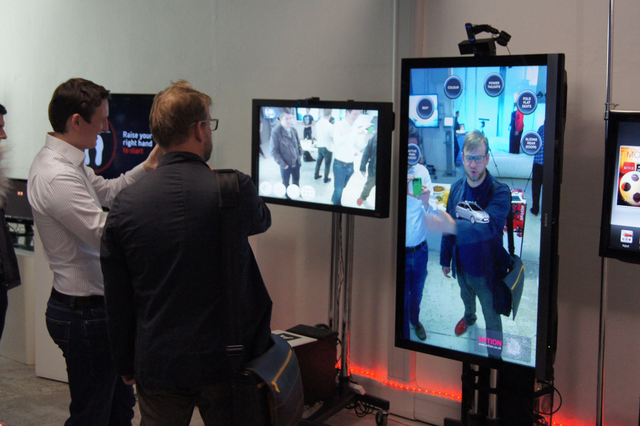 At about 0.4 Kg, the version I tried felt like ski goggles with a smartphone glued to the glass, more comfortable than the bulky headgear of yesteryear. The technicians positioned me on a narrow stage with a fan-powered breeze and the demo began.