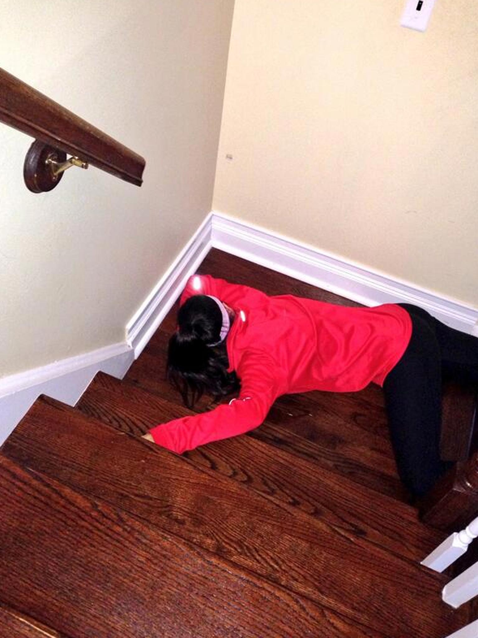 The latest and most ridiculous internet craze to emerge involves teenagers posting photographs of themselves falling down the stairs