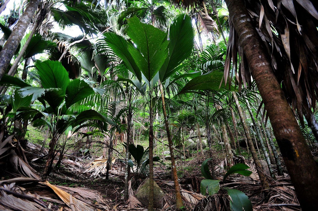 The Seychelles' second island is more rustic than Mahé. Though there are smatterings of settlement (chiefly on the north coast at Anse Volbert), Praslin is a calm prospect where the Vallée de Mai National Park (00 248 4 321 735; sif.sc; SCR320/£15) dominates. This tranche of virgin forest was granted Unesco protected status in 1983 as one of only two sites on the planet where the coco de mer palm is endemic. (The other is Curieuse island, directly north.) This hard-labouring tree produces a type of conjoined double coconut, elegantly curved, which can grow to 65lb in weight and 18 inches in diameter – its size adding to the mystique of a place where the rare Seychelles black parrot flits in the canopy.