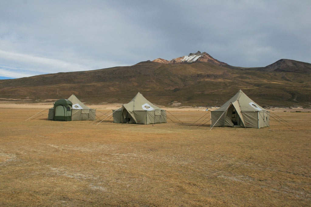 After a sunset that turned the sky pink and mauve, we settled in. This is a harsh high-altitude environment, intensely cold at night, but the tents were up to the task. Not only did we eat several dinner courses at proper tables and chairs in the kitchen tent, but then someone announced the excellent idea of hooking up electric blankets to a generator. After checking out the brilliantly clear night sky, the electric blankets, combined with thick layers of duvets, thermals and five layers of clothing, ensured a comfortable night's sleep.