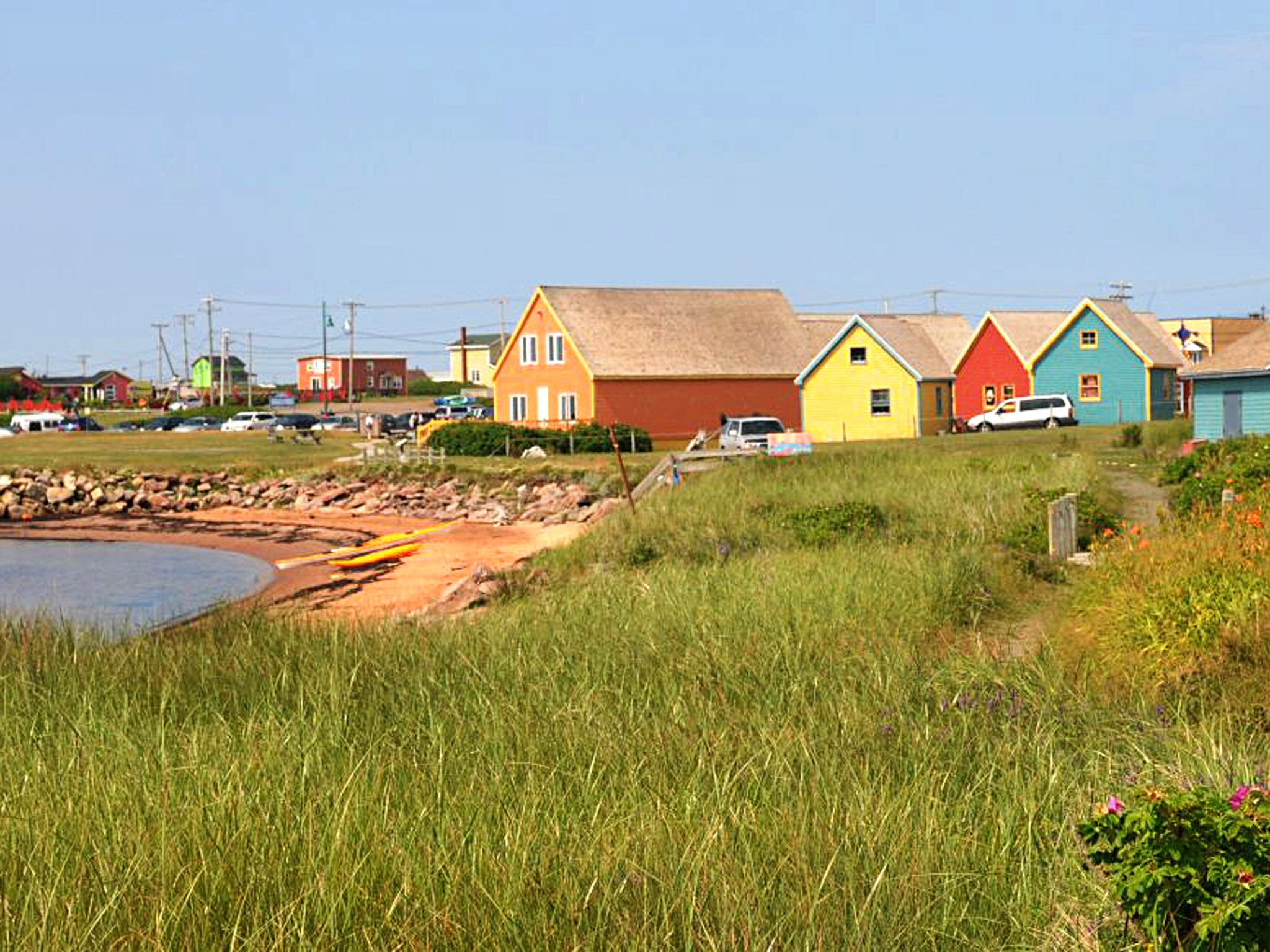 A love of colour is the most obvious visual characteristic here, as though the local council has made sure no two houses are the same shade, thumbing through the Pantone book or paint charts to find an unused hue. The vivid colours on the siding and cedar shingles of the Madelinots' houses sometimes produce some garish juxtapositions – lime green and turquoise anyone? – but the randomly scattered houses give the same cheerful lift to the landscape as the brightly coloured houses of Burano or Tobermory.