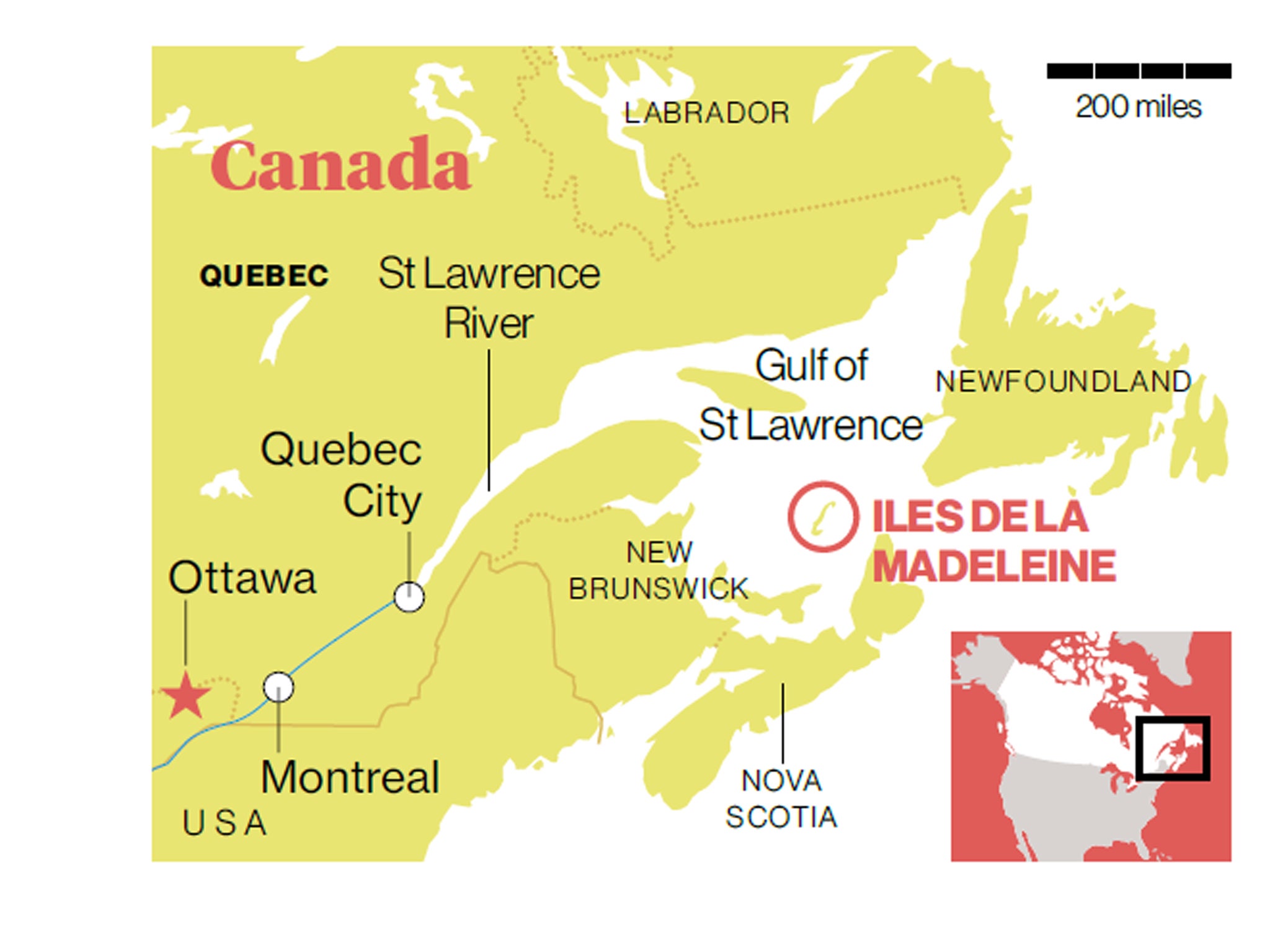The road ends at the barb of the fish-hook on Ile Grande Entrée, deserted until the 1870s but now home to more than 100 lobster boats packed in the harbour. Not a trace exists of the 63 factories that once canned their catches; today the lobster is exported frozen or fresh. Strict quotas aim to prevent lobster going the way of the herring – or the walrus that were hunted to extinction by 1800.