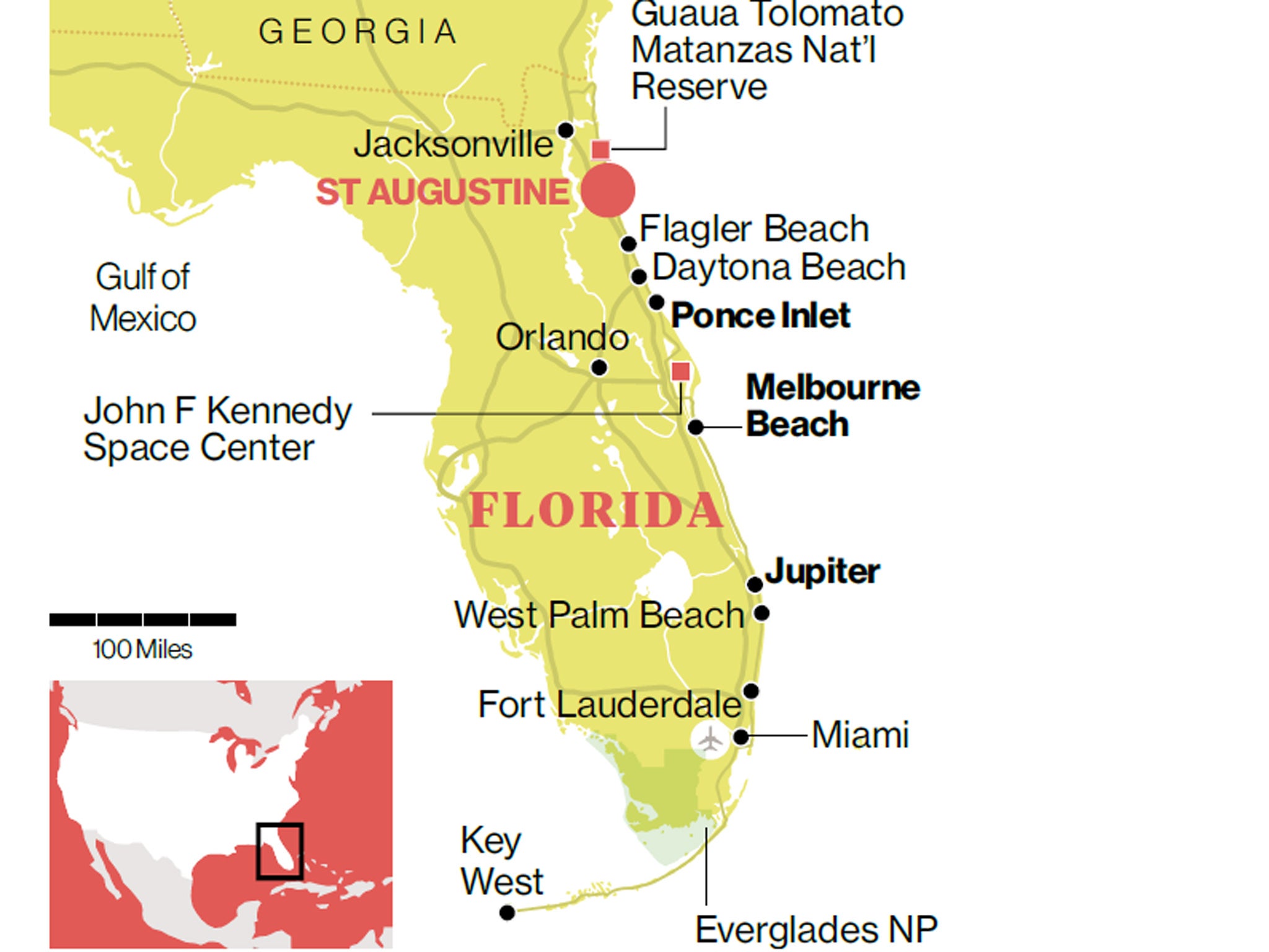 But what is clear to me, as I admire the new statue (it was unveiled on 2 April), is that there is something special about Florida's upper east side. Wandering to the ocean, I realise that this particular beach can be little changed from the day when Ponce de León may have glimpsed it. It has clean, pale sand and a wild verdancy, all wind-battered palm trees and salt-flecked seagrass. Moreover, the stretch of coast that runs from Jacksonville to West Palm Beach is little known to British visitors, despite delineating a state where Orlando and Miami are practically second homes. My plan is to see it all, visiting the four contenders to the title of "America's birthplace" by tracing State Road A1A – which, in cascading 329 miles from the border with Georgia to Key West, barely leaves the shore.