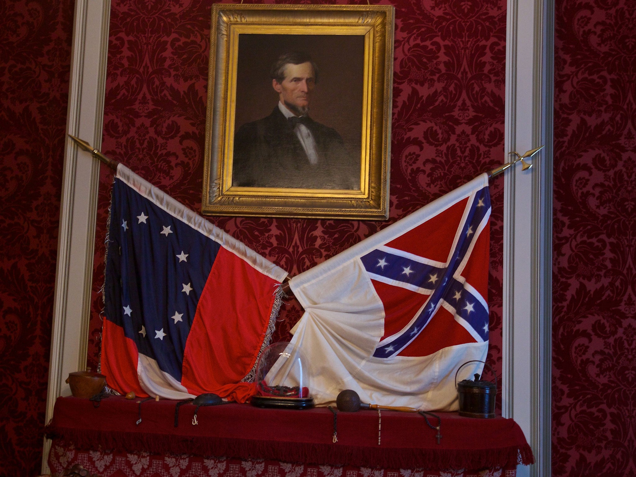 There is a distinct whiff of "the south will rise again" about the restored White House. It's full of the Davis family furnishings and oddities such as an original Confederate flag, alongside the better known battle flag of the Confederacy. Jewish Southerners objected to the original, with its cross of St George, as being too Christian. To this day the Confederate flag causes controversy, being seen by many outside the south as a symbol of segregation, slavery and racism.