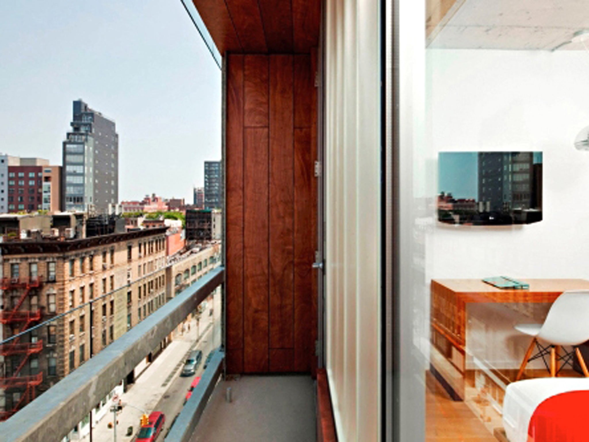 There are 55 rooms, with plans for about a dozen more. I was in room 702, a Cityscape Corner room on the seventh floor with views down Delancey Street to the Williamsburg Bridge and across to the Empire State Building. It had floor-to-ceiling windows on the street side and a dinky open-plan bathroom on the other. If you're not up for watching your room-mate take a bath, opt for anything but the corner rooms, which have a shower only – these rooms are smaller but have balconies. This being Manhattan, the rooms aren't generous, but the white walls and glass panels make them seem roomier. The frosted glass sections distort car and street lights, giving the effect of giant, blurred fairy lights.