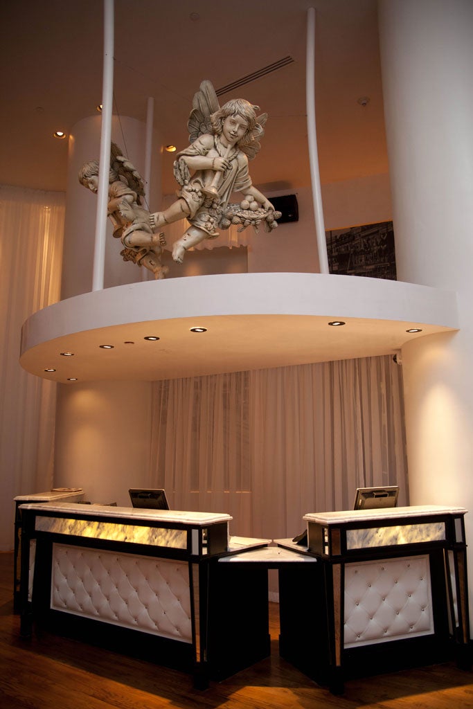 An ornate Beaux Arts building marks the spot for this divinely inspired address which opened on Canal Street in December. Inside, an ethereal theme takes guests from a heavenly all-white reception desk with two cherubs poised overhead, to a red bordello-style bar that would seduce even the saintliest of souls. The lobby has a custom-made, turquoise-felt pool table; the walls are lined with vintage photos; and large bell-shaped chandeliers hung throughout contribute a modern, design-focused feel.