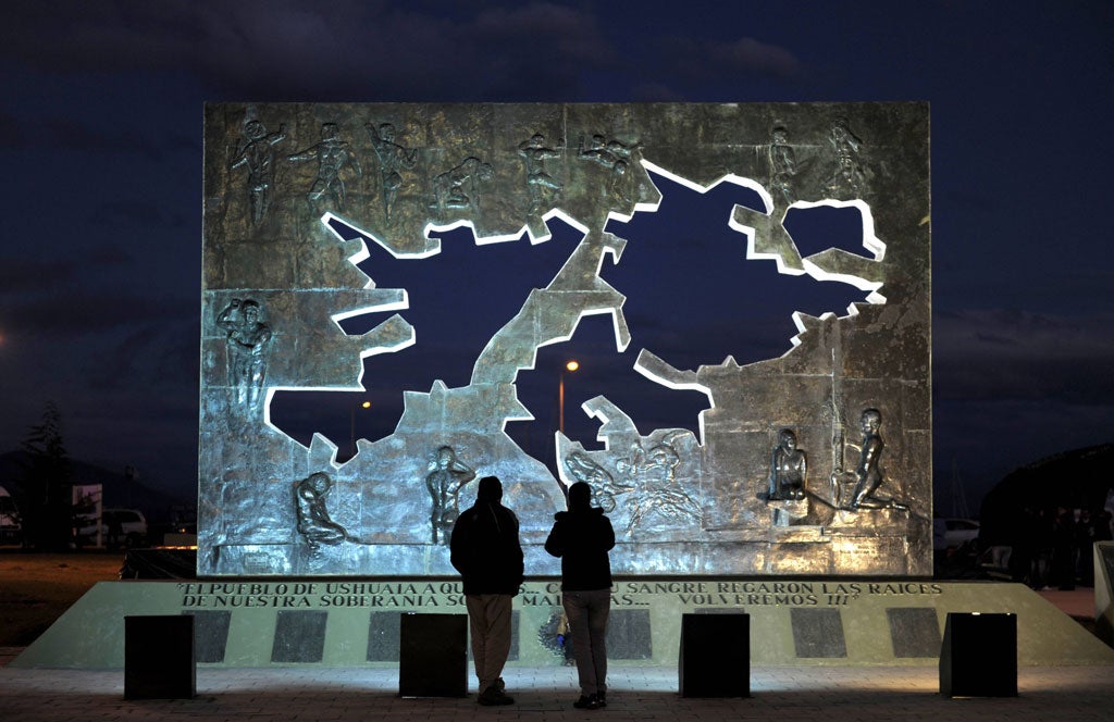 The cause of this chest-beating becomes clear as I drive into town. Ushuaia was a naval base during the 1982 conflict (the ill-fated warship General Belgrano sailed from here) – and at the end of Avenida Maipu, a large memorial remembers the Argentine dead. It is a solemn sight, the outlines of the two main Falkland outcrops caught in outline, blank space cut from iron panels. Opposite, a sticker glares in the window of a wooden home, "Malvinas" written in black on the pale portion of the blue-and-white Argentinian flag. This week marks 30 years since hostilities were ended on 14 June 1982. Emotions here remain raw.