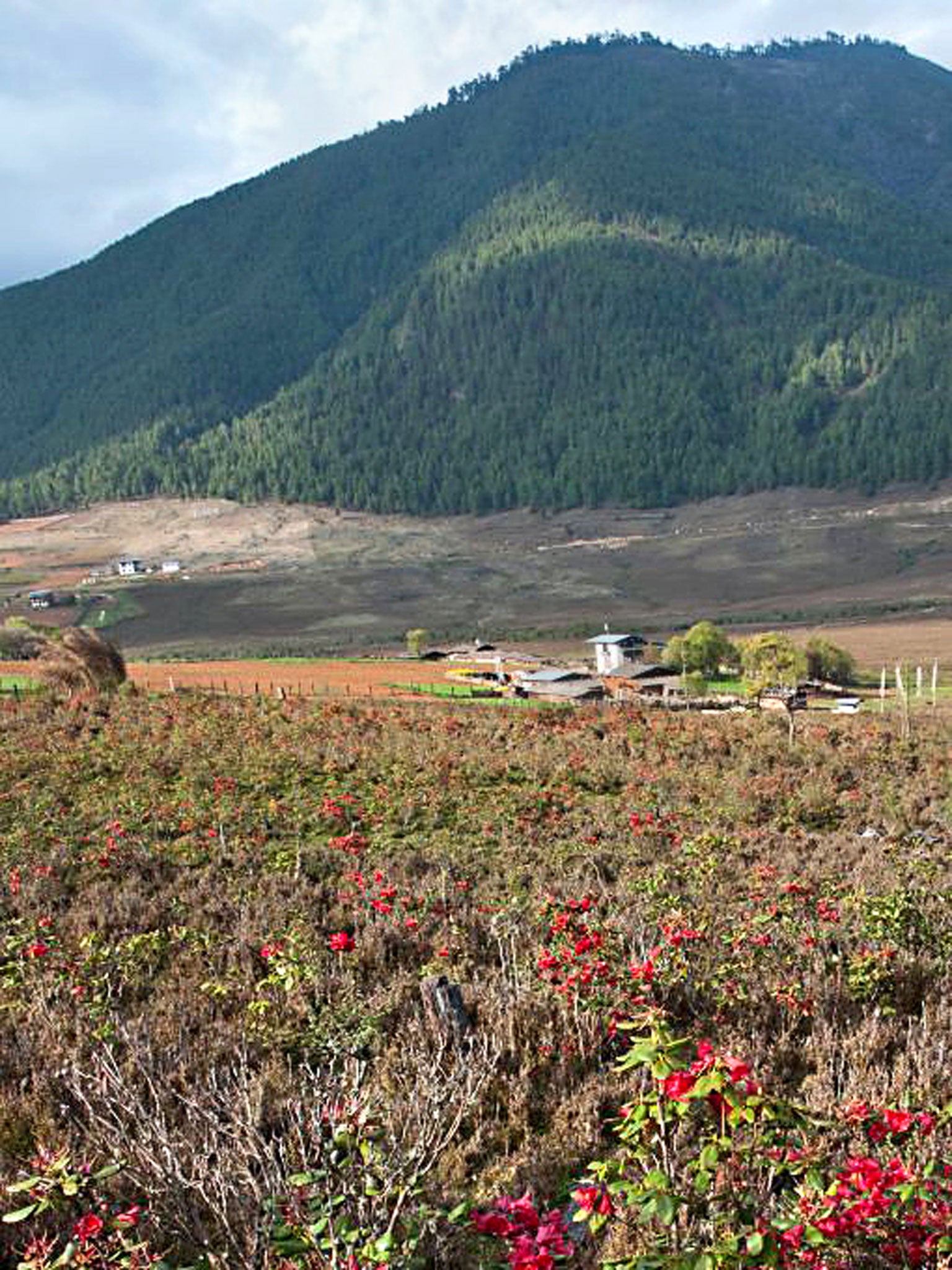 Bhutan is one of the last unspoilt corners of Asia. Almost 70 per cent of the country is blanketed in thick forest and there are high plateaux filled with wildflowers. It supports a number of elusive species of flora and fauna such as blue poppies, black-necked cranes and snow leopards that prowl the high slopes of the Himalayas. Half the world's population of white-bellied herons live in Bhutan.