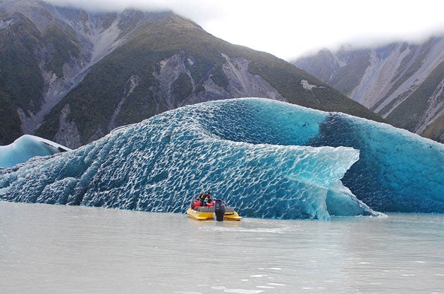 From Queenstown, you can forge into the wilderness, not least by dashing north to Mount Cook National Park (00 64 3 435 1186; doc.govt.nz), where Australasia's tallest mountain climbs to 12,316ft and Glacier Explorers (00 64 3 435 1641; glacierexplorers.com) offer cruises amid the icebergs that drop into the lake below the Tasman Glacier – NZ$140 (£74).
