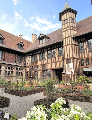 The town is also an intriguing place of hidden courtyards complete with wells and open galleries, some of which are accessible – if you know where to look. No 111 on the bustling shopping street of Emile Zola, for instance, appears to be a private door next to an office of Mutuelle de Poitiers Assurances. But during working hours this door is usually unlocked and visitors may enter. It gives access to a narrow corridor that leads to the stunning inner space of a timbered townhouse, the Hotel du Lion Noir. This courtyard was restored only in 2001, its galleries and spiral staircase previously covered in drab-looking plasterwork.