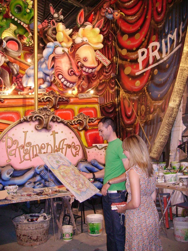 Finally, the carnival's star attractions appeared, making their way slowly down the parade route: gigantic papier-mâché floats built from scratch every year by competing teams of craftsmen. They had been constructed in the preceding four months – the last few weeks of which were spent working practically around the clock. These allegorical creations range in theme from economics to politics, depending on the inspiration of the master cartapestaio (papier-mâché artist) and are all on a scale that has to be seen to be believed.