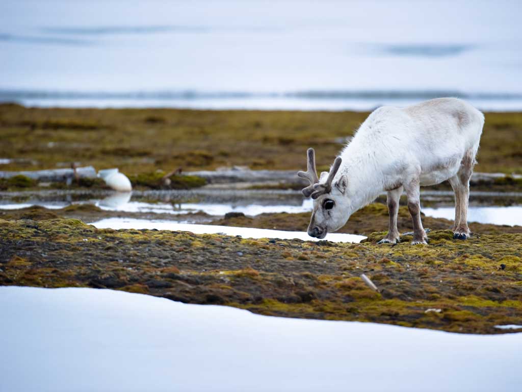 Then there's the Svalbard reindeer, more stumpy and wind-pummelled than their mainland cousins, fetchingly doe-eyed in panda fashion, who graze around the equally unlikely summertime flowers of moss campion and pink saxifrage.