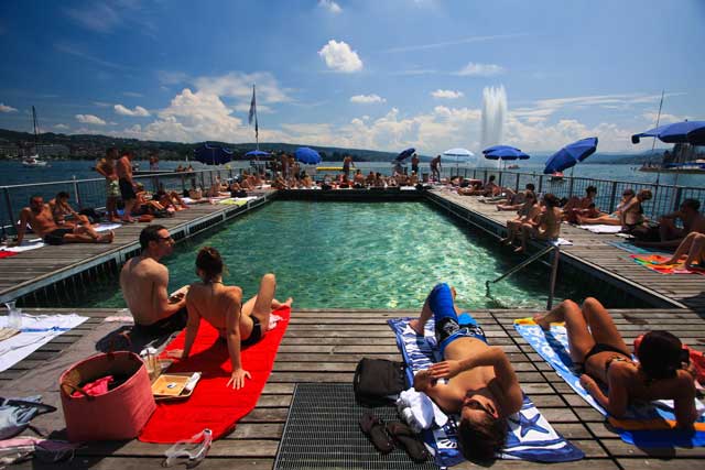 We'll get to that in a bit, though; this tale starts one steamy summer's afternoon, long before Kreis 5's warehouse clubs open their doors. On a day like this, lakeside lounging is the only option and there is no better place than Seebad Enge (00 41 44 201 3889; tonttu.ch), the most stylish lido in town. Settling on to a raised, wooden platform alongside Zurich's most attractive bathers, I indulge in the local fetish for mid-afternoon prosecco and take a dip in the lake to cool off.