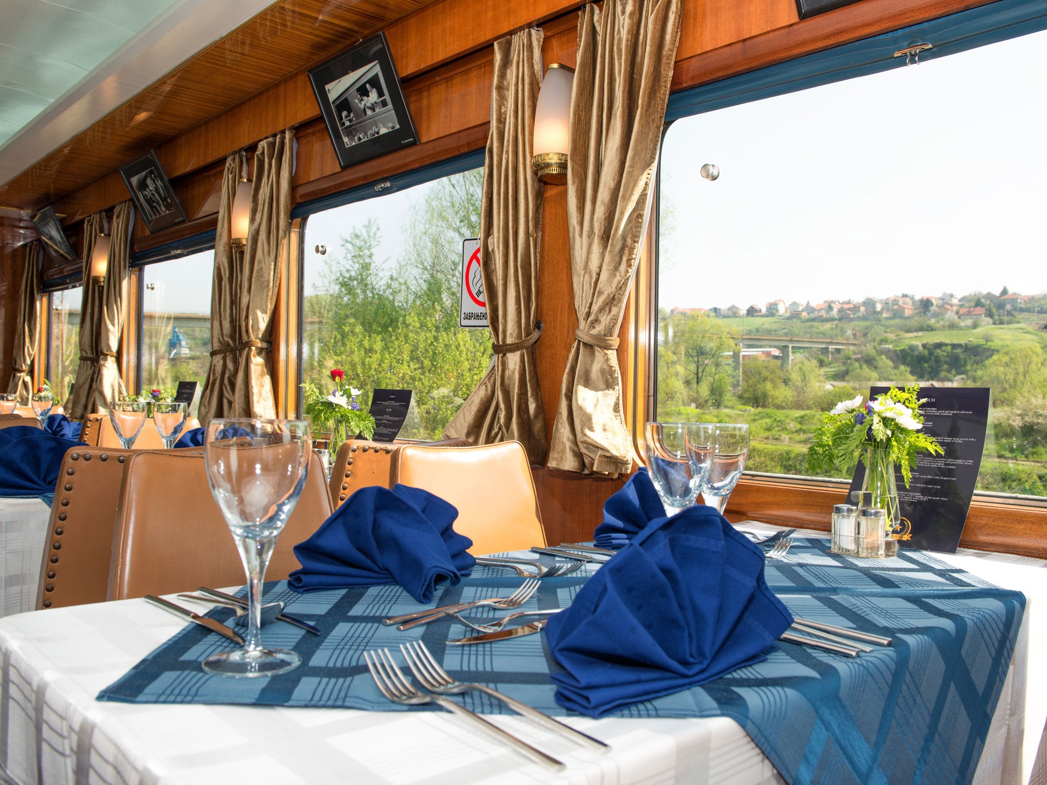 But now the call comes for lunch in the restaurant car and we are regaled with a Tito-era blow-out of specialities of the Vojvodina region. The extravagance of the veal consommé, pork cutlet stuffed with sausage and mushroom, followed by baklava and accompanied by local wines, is matched only by the drama of the scenery: hair-raising bridges, vertiginous gorges, frothing rivers pass in an endless panorama by the window in this wild landscape.