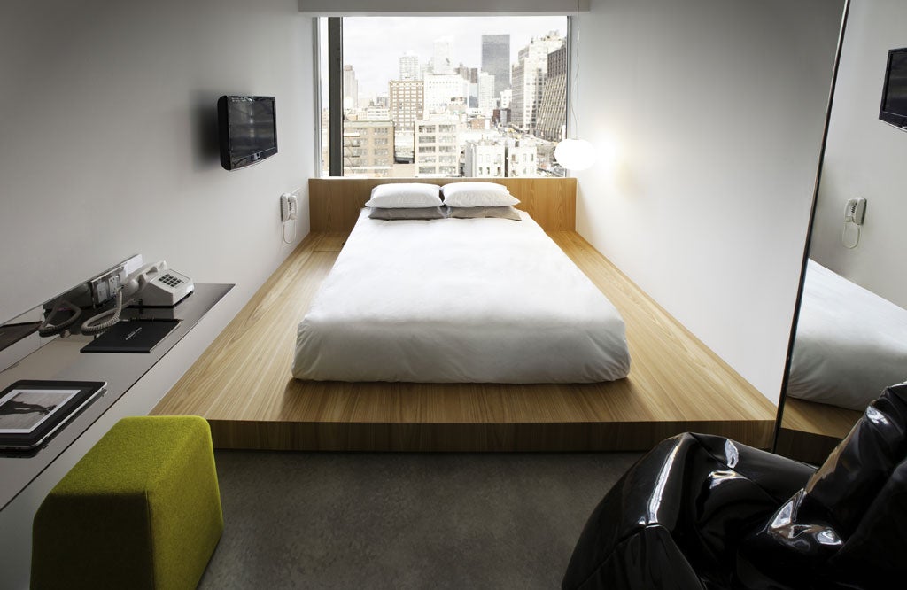 Apart from Lisa Jack's Obama photograph in the lobby, the art is left to the surrounding streets, with the focus on design – Alessi alarm clocks, Zanotta beanbag chairs and hanging miniature stoves which wouldn't look out of place in a Bond villain's lair. The seven studio suites are roomy with skyline views but, as so often in New York, the cheaper rooms are boxy.
