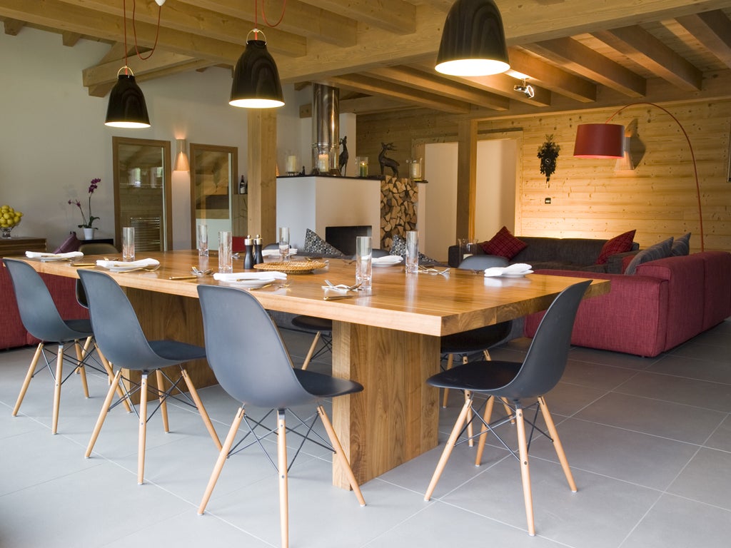 It is the first elite chalet in Châtel, a resort with rapid access to the Portes du Soleil, the 650km (400 miles) trans-border circuit that includes Avoriaz, Morzine and Champéry. Located on a hill in Petit-Châtel, it has sweeping views of the traditional Savoyard village and the mountains beyond. London architect Jimmy McDonald has created a building in two halves, one with bedrooms, the other with living areas, a concept that allows some to sleep undisturbed while others party into the night.