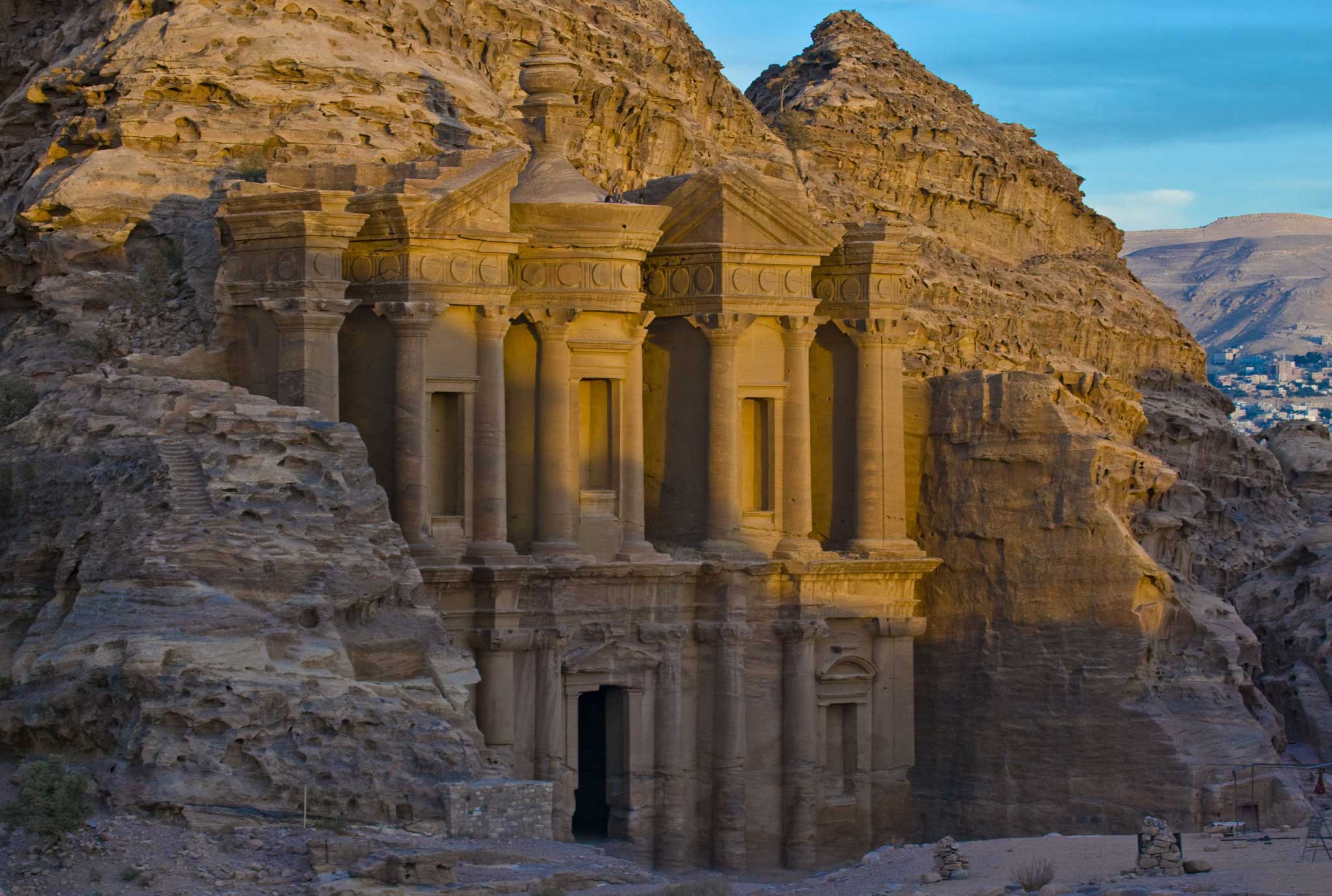 It was already late in the day, and here we were, five-month-old strapped to my chest, standing at one of Petra's remotest points, with an inconsolable small child. What had possessed us, not only to climb up 1,000-odd slippery sandstone steps to the monastery, which at 50-ish metres tall is the largest of the ancient city's vast edifices, but to continue beyond it to reach a peak?