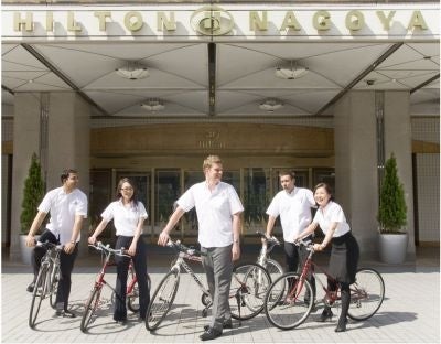 The Hilton hotel in Nagoya has started offering its guests free use of bicycles to get around the city, part of an experiment that the company hopes will be adopted by its properties around the world.