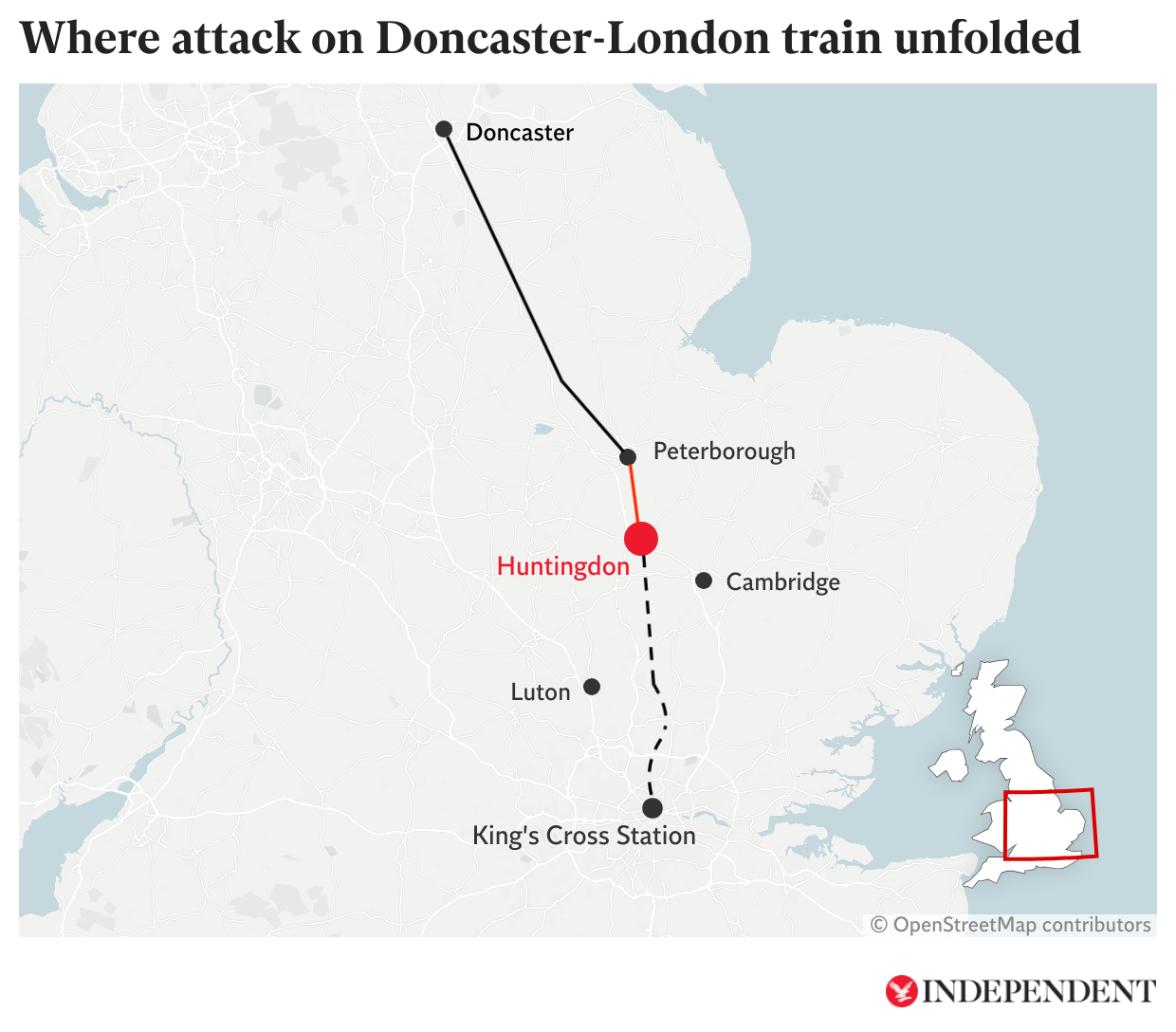 As police continue to investigate the knife attack on a train that ended at Huntingdon station, rail passengers have been warned: “LNER services between London Kings Cross and Peterborough may be cancelled, revised or delayed.”