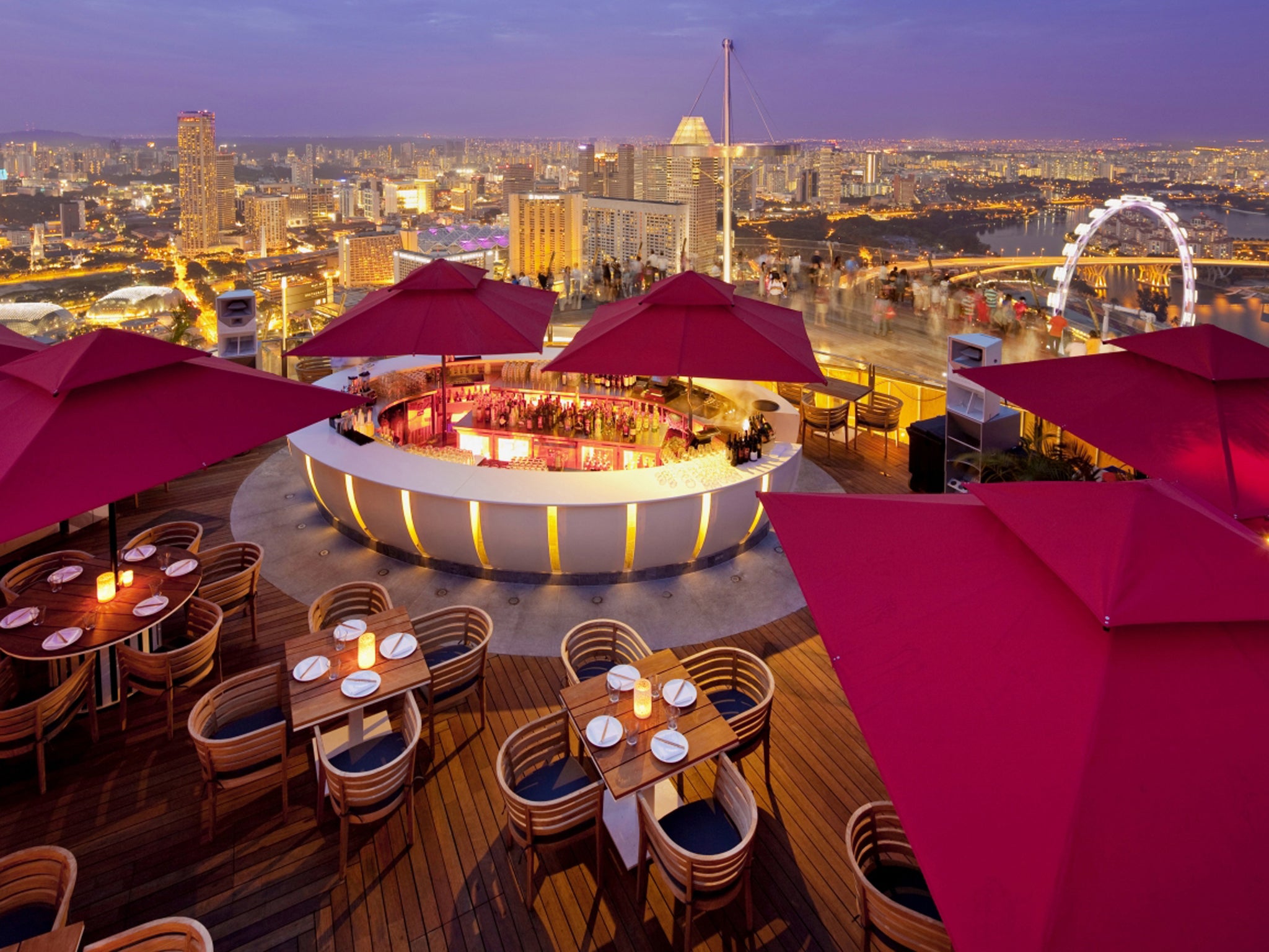 Marina Bay Sands, Singapore (00 65 6688 8868; en.marinabaysands.com). Doubles start at S$399 (£204); cocktails S$22 (£11).