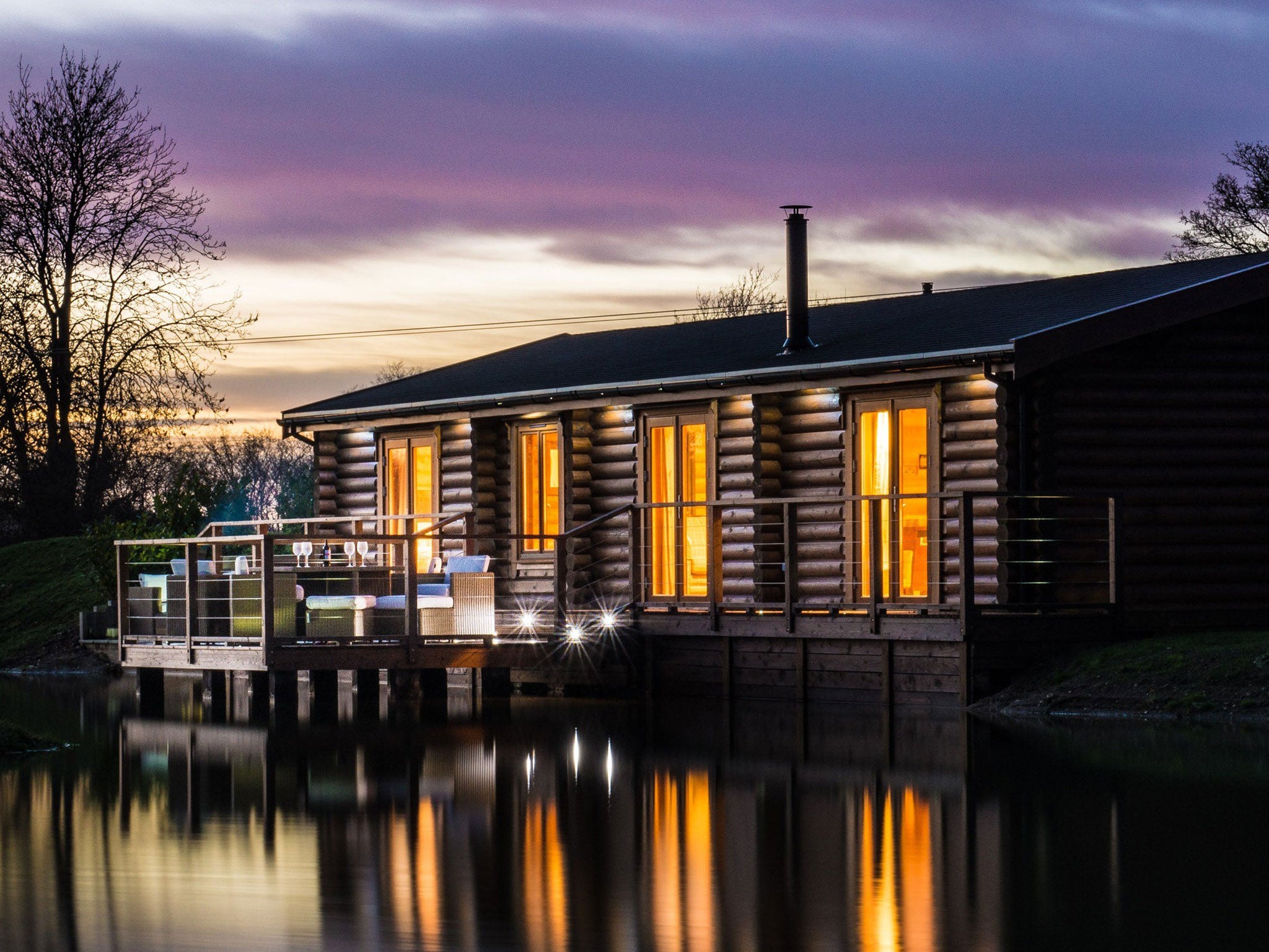 Suffolk Escape is a new collection of Scandinavian-style log cabins by a lake outside Ipswich. Each has two double bedrooms, a sitting room with lake views, hot tub, and dining deck (oneoffplaces.co.uk).