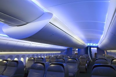 Boeing's stretched 747-8, designed as a competitor to Airbus's "superjumbo" A380, is set to make its first test flight February 8. Capable of carrying 51 more passengers and said to emit 16 percent less CO2 than existing jumbo jets, the aircraft's high cabins and new lavatories are designed to increase passenger comfort.