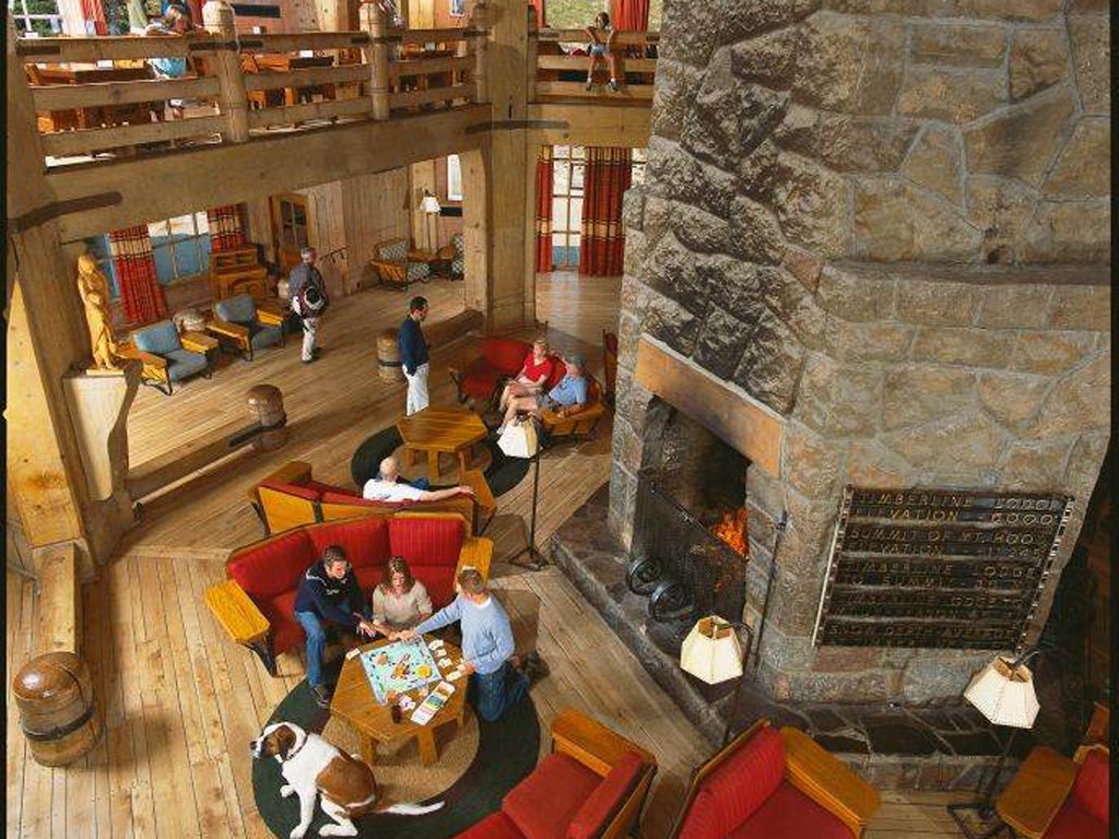 By contrast, the interior is warmly welcoming, with blazing logs in a four-sided fireplace in the middle of the lobby. Boots off and you're in, provided you've reserved one of the 66 rooms. Otherwise you can dine gourmet-style in the Cascade restaurant or eat dodgy pub grub in the atmospheric Blue Ox snug.