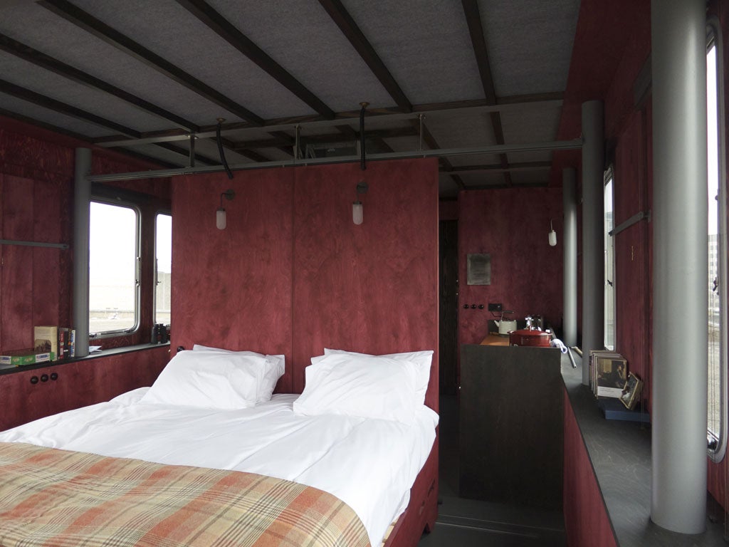 But Le Roi des Belges, also known as A Room for London, is somewhat different. First, it's a temporary installation for only one year and available to rent for only one night at a time. Second, it's a collaboration with Artangel, an organisation that puts radical arts-based projects in motion. Third, the design is a joint effort by architect David Kohn and artist Fiona Banner (famous for installing retired and buffed-up RAF jets in Tate Britain). Fourth, it makes no attempt to be modern. In fact, on the BCDS (Bayley Critical Dogma Scale), it is somewhere between pleasingly whimsical and annoyingly cute. But this nagging duality is appropriate because when you step aboard Le Roi des Belges, you're not quite sure whether to experience vertigo or seasickness.