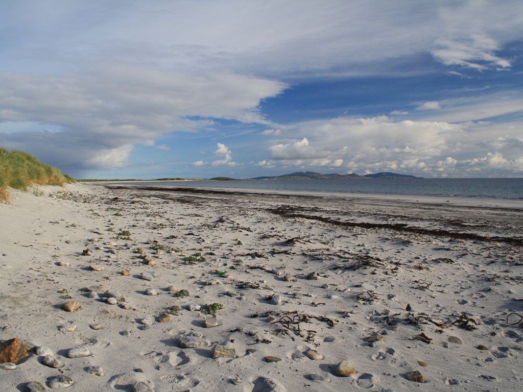 The tide is out, so I walk along the beach, close to huge raised beds of exposed, and stinking, seaweed. This shoreline has always been a rich source of material for the business of everyday island life. Until the 1960s mattresses were made from seaweed, beds from driftwood. Along the coast, tradition has seen islanders gather dulse (a seaweed, good with butter or as a broth) and carrageen, a delicate seaweed used for milk pudding.