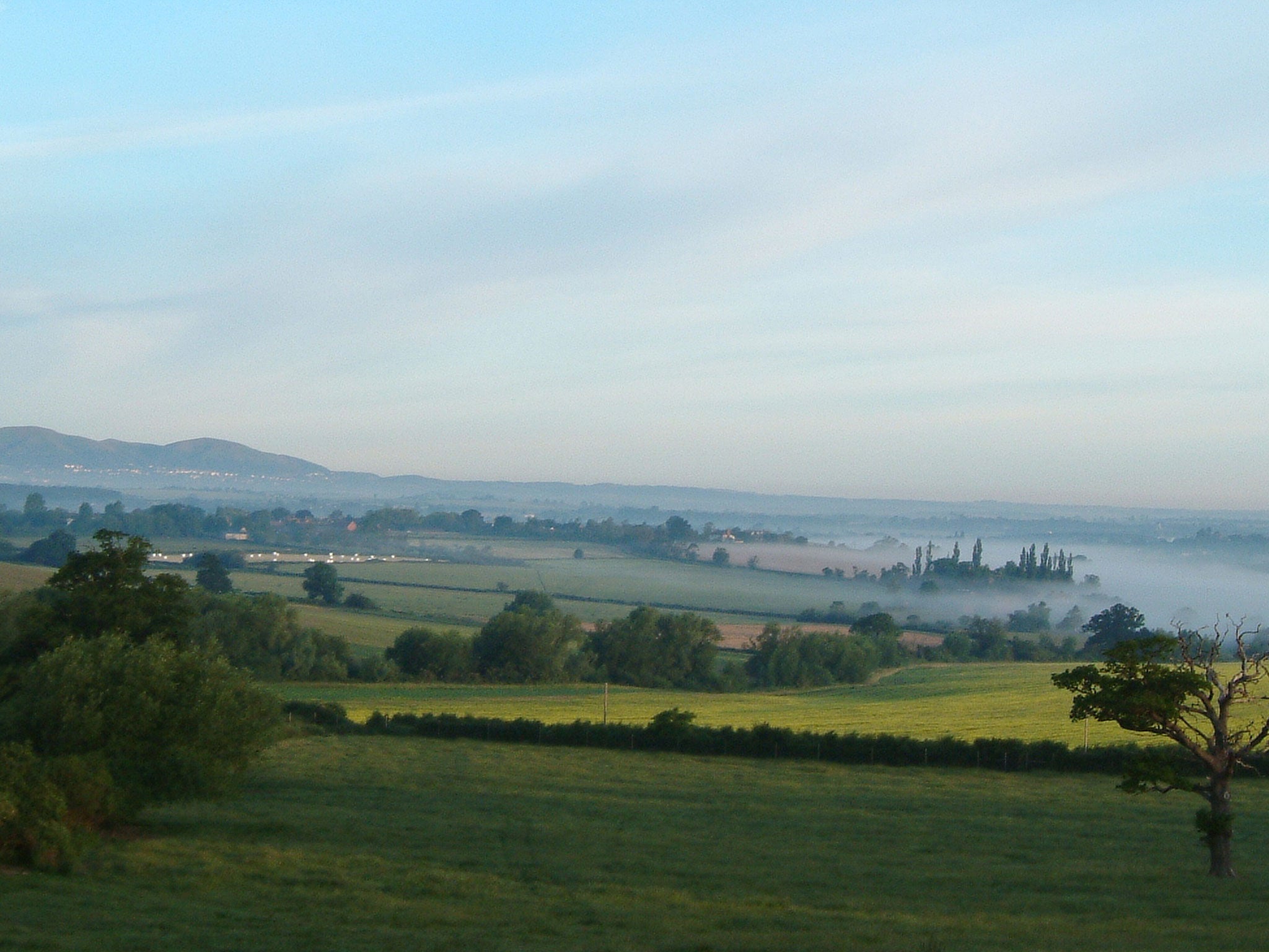 Pitchy smoke rises here and there from stubble fires. Behind the Malverns, deep in mid-Wales, you can make out the blurry silhouettes of the Cambrian Mountains. Way to the north lie the uprisings of the Shropshire Hills. I've stood on the Long Mynd in Shropshire and looked back at Bredon Hill, with the feeling that only walking can occasionally give you of gazing back at yourself, in another time and place.
