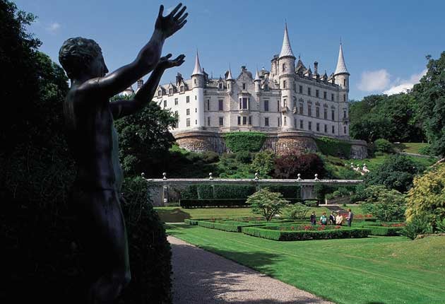 Look at the map to see Sutherland's place in relation to the rest of the universe and you'd conclude this was the wilds of the north, particularly if you've packed some southern preconceptions in your backpack. But not only is Golspie a charming town, but the surrounding countryside manages both to be rugged and delectably pretty at the same time. North-east from the summit was Dunrobin Castle, peeking out of the firs and looking a little like the Disney castle, which is still the seat of the Dukes of Sutherland. Close by, to the south-east was Loch Fleet, the most northerly estuary in Britain, rectangular in shape and semi-enclosed on the seaward side by a vast spit and sandbar. Beyond, you could just catch glimpses of the sandy beaches of the Dornoch Firth, along with a hardy caravan site. Further out to sea was Cromarty, of Shipping Forecast lore, and the oil rigs positioned in the Cromarty Firth, while binoculars picked out the southern coastline of the Moray Firth, lined by fishing communities.