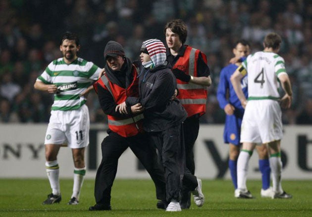 Celtic were fined £42,000 because a badly dressed supporter managed to run on to the pitch during their Champions League match against Manchester United. How things have changed – in the old days this was part of the fun of the game. If things weren't going your way then you'd simply start ripping up the seats and hurling them at the players before all jumping over the barriers and rampaging around the pitch until the police cavalry were sent in. Nowadays, if you simply throw a well-aimed coin at a player in a sign of dissent, they turn around and throw it right back at you – a clear indication of just how overpaid they now are. Credit crunch? What credit crunch?