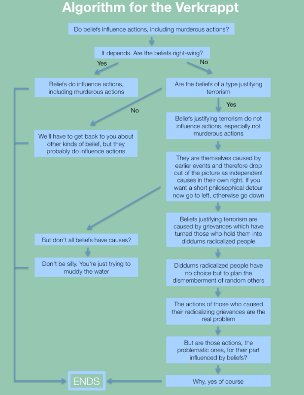 5. A lovely chart from Norman Geras two years ago, revived by The Gerasites, a website devoted to his memory and to keeping alive his wonderful spirit of genuine left-wing scepticism about fake left-wingery. Verkrappt, I should explain, is a mock-Yiddish word that Norman invented. You can work out what it means, I think.