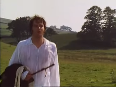 No, Firth’s shirt stayed on; it was just wet from a swim (above). The bare torso that set feminine hearts aflutter across the nation was that of another actor, Aidan Turner, in a more recent television costume drama, Poldark.