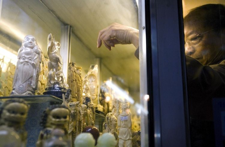 Antique dealer Ren Wenzhuo produces an intricately carved pendant from a glass display case before retrieving three more trinkets from a locked safe, each costing between 6,000 and 7,000 RMB (£607-708). But these small pieces, one of which allegedly dates from the 18th century, are of little concern to Chinese authorities. It is newly smuggled items that directly contribute to the decimation of Africa’s elephant population.