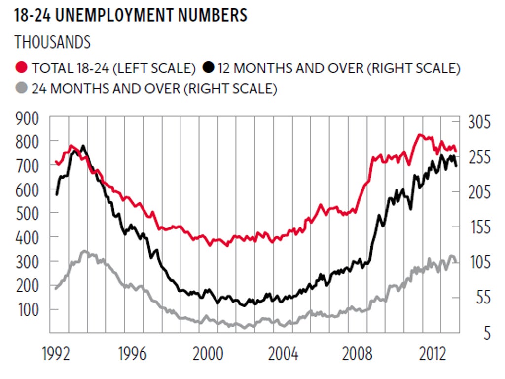 No data are published on the numbers of the youngest group unemployed for more than two years. This is of real concern given that the literature shows, including work that David Bell and I have conducted, that long spells of unemployment when you are young create permanent scars that youngsters never get over. This is a national disaster in the making.