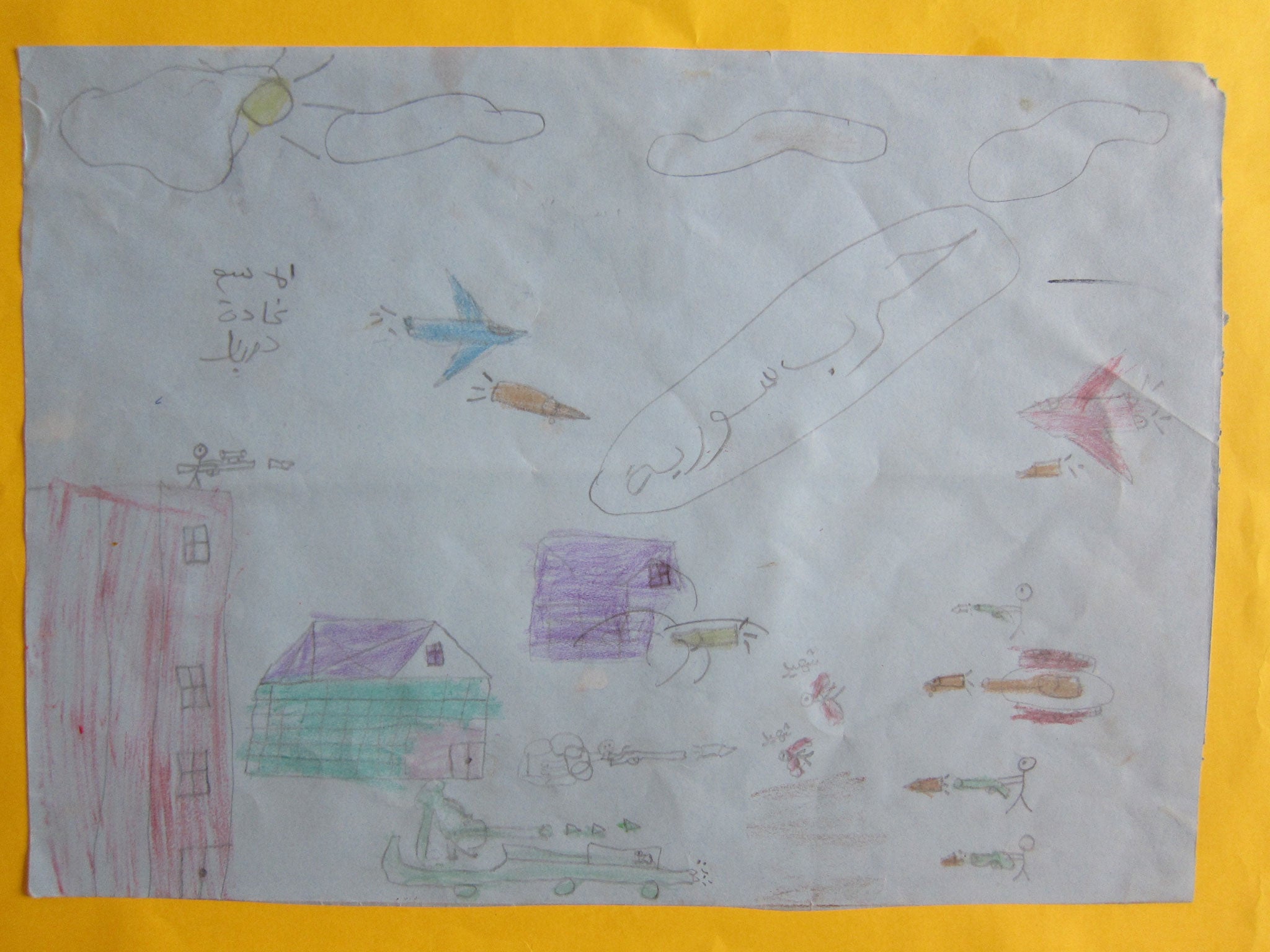 But when a teenage girl explained her drawing in more detail, it was much, much worse. The building being bombed in her picture turned out to be her school, the stick figures on the ground were fellow students “dying while they were going to school”, and the drawing, she said, was intended to show “how afraid [she] was while planes were bombing the school”.