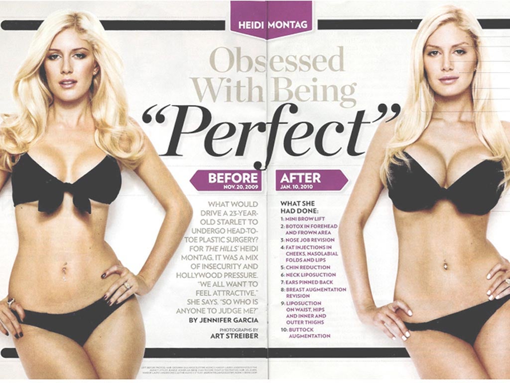 Tanned, gravity defying and teamed with the type of washboard stomach most people could only achieve through amoebic dysentery, silicon jugs became all the rage. Fast forward 30 years and it’s not just our puppies we’re subjecting to brutal surgery. Everything from bingo wings to pinky toes can now be altered to achieve that elusive perfect body.