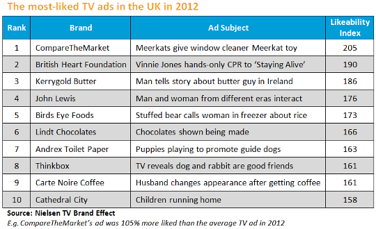 Meerkats top most popular adverts of 2012